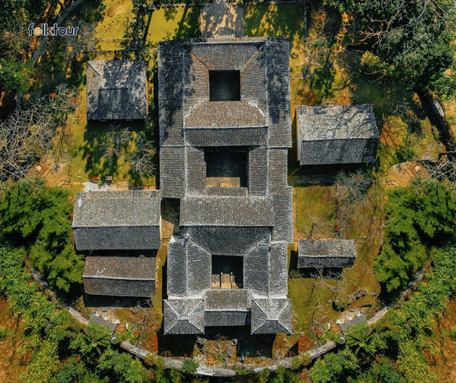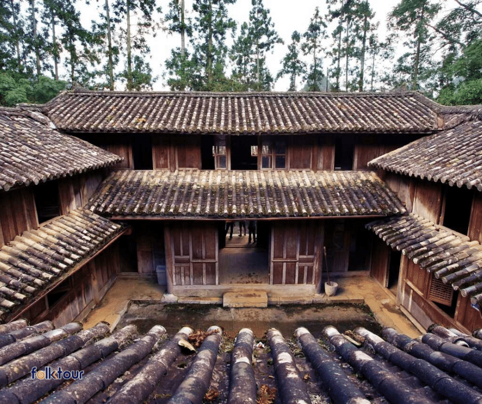 Cổng vào dinh thự được lát bằng những phiến đá lớn vuông và phẳng, mái cong, uốn lượn, lợp ngói âm dương, vật liệu xây cổng làm bằng những phiến đá liền khối, chạm khắc công phu. Tour Hà Giang 3 ngày 4 đêm từ thành phố Hồ Chí Minh hấp dẫn nhất.